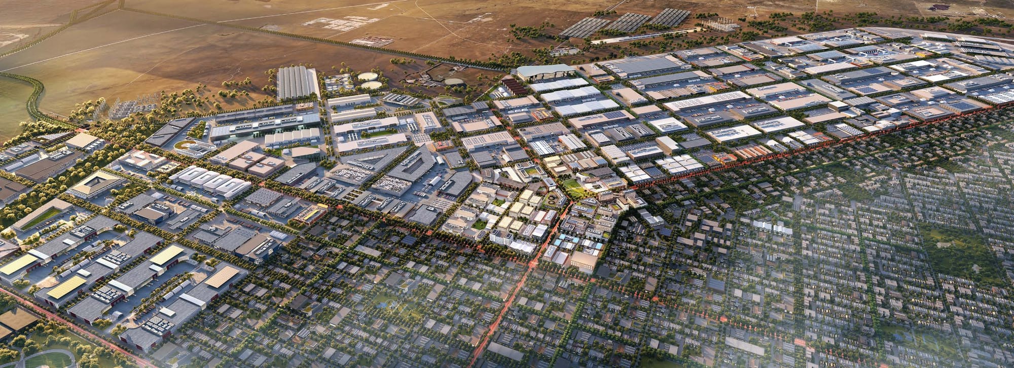 The Downtown core would rise to about eight stories, anchored by two regional transit lines, while Solano Foundry spans roughly 2,200 acres as an advanced manufacturing and innovation hub for aerospace, energy, and defense industries.